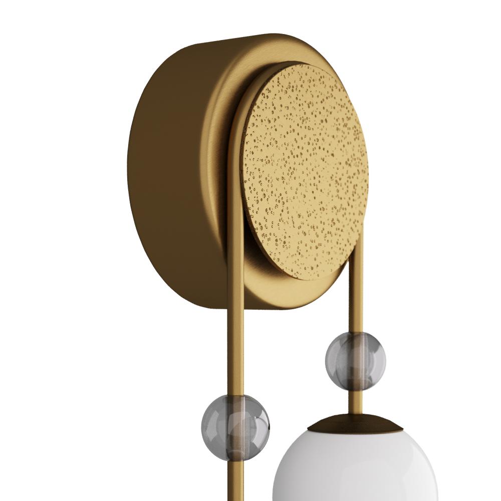 Like an elegant pair of threaded earrings, the staggered lights of the Beverly offer a playful mix of lengths to please the eye. A disc of antique brass iron complements globe shades of opal glass. Accents of smoke toned crystal add extra intrigue. Pair with the right version (DWC23) for a symmetrical look. Damp-rated, although limited covered outdoor conditions may affect finish. Finish will vary.