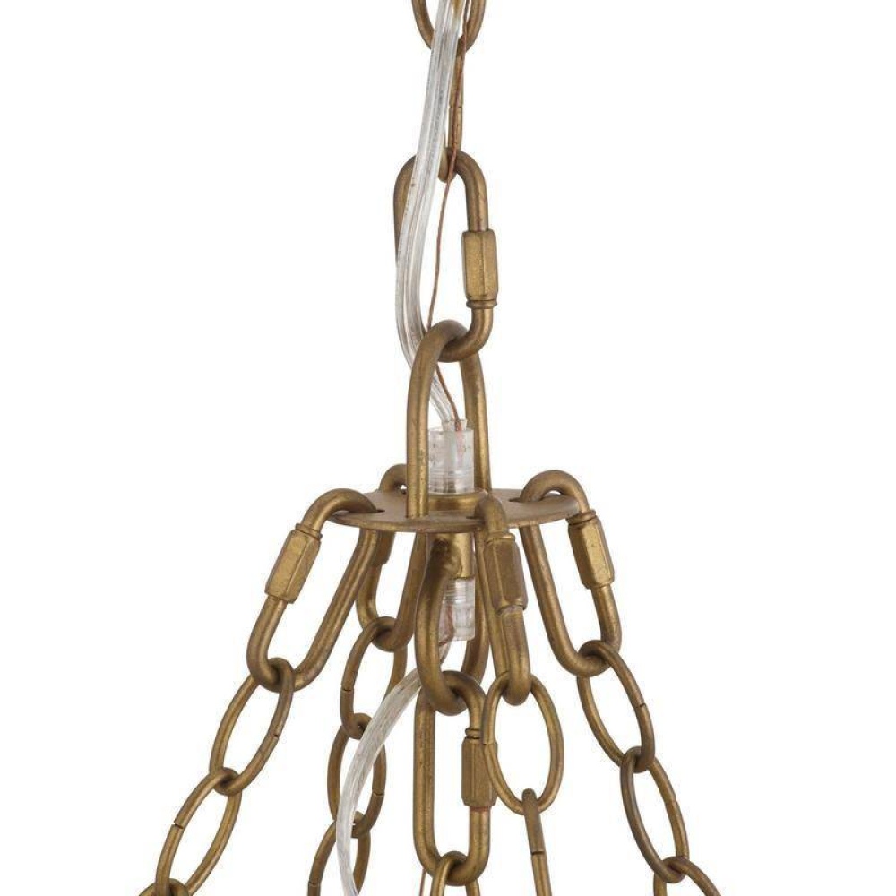 The lush allure of tropical foliage informs the two-tiered Bilal. Suspended from an antique brass iron finished chain, discs of coconut shells in a neutral ivory hue are strung together to reveal a vision of illumination. Finish will vary.