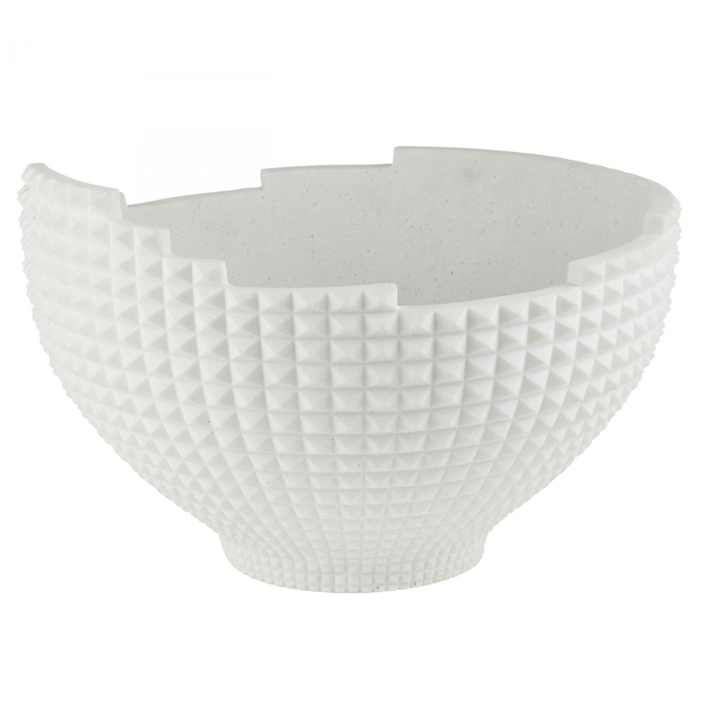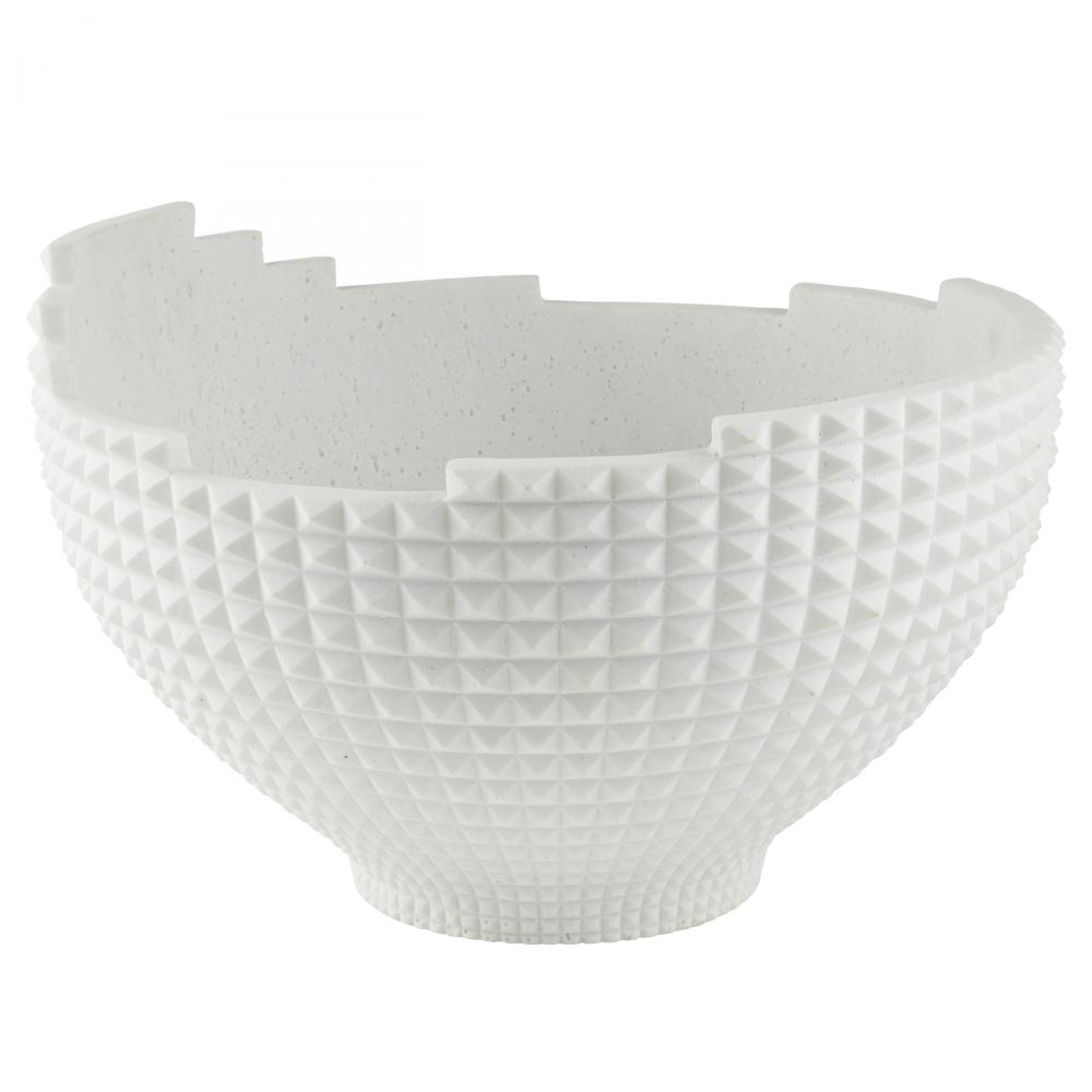 Drawing inspiration from the ancient ruins of the Roman Coliseum, our historically influenced centerpiece has a museum-like quality. Crafted of ivory ricestone composite, the sculpture has a studded, stairstep effect on its outer surface for textural interest. Finish will vary.