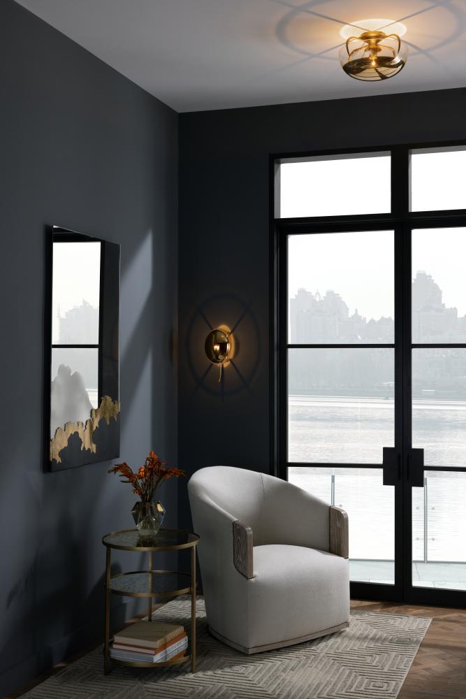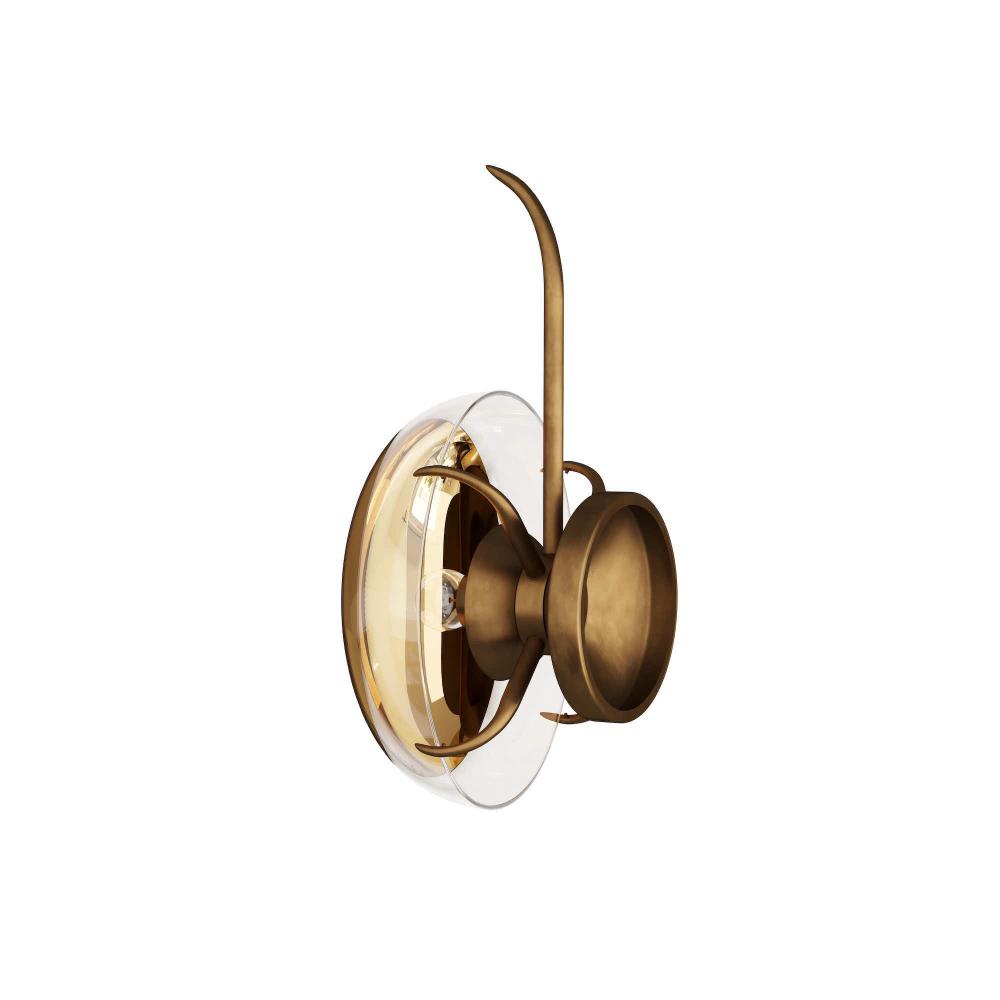 LIKE ITS CEILING MOUNTED COUNTERPART, THIS GLAMOROUS SCONCE IS SPARKLING JEWELRY FOR THE WALL! CONTEMPORARY GLAM WITH ORGANIC SENSIBILITIES. THIS ANTIQUE BRASS WALL SCONCE CASTS A SHADOW AND LIGHT EFFECT ON THE WALL DUE TO THE GOLD OMBRE GLASS. FINISH WILL VARY.