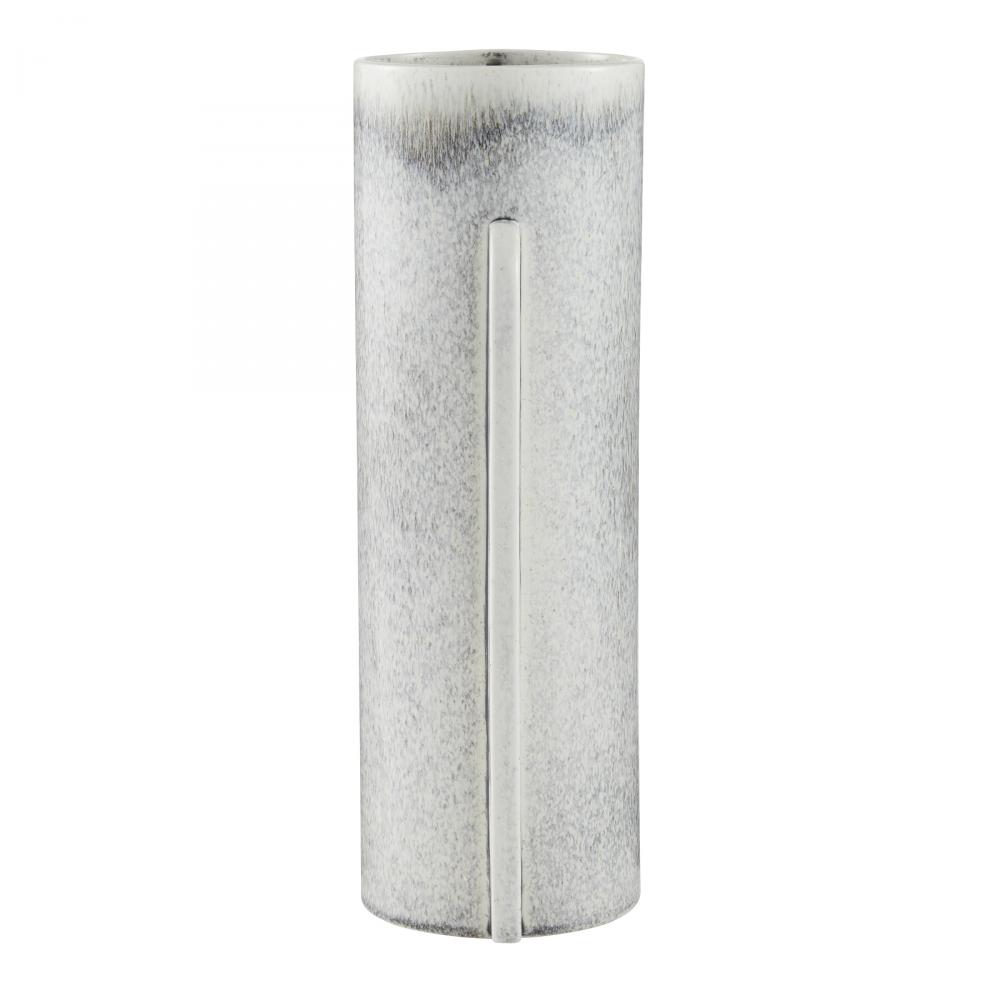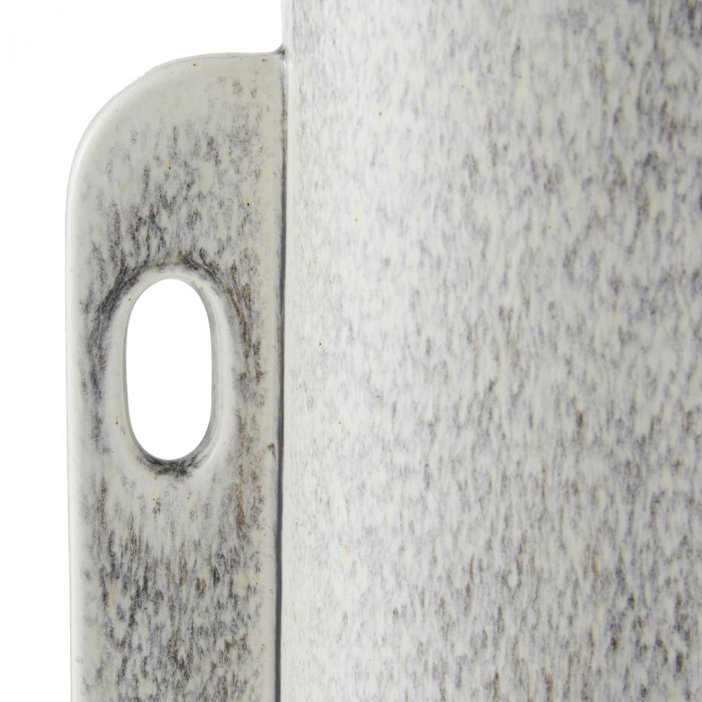 Mid-century ceramics' clean, distilled forms find an update in a double-winged vase. Designed with unique asymmetric handles on either side to catch the eye, the Daybreak makes an elegant home for an impactful bouquet. Glazed in an ice-reactive finish. Finish will vary.