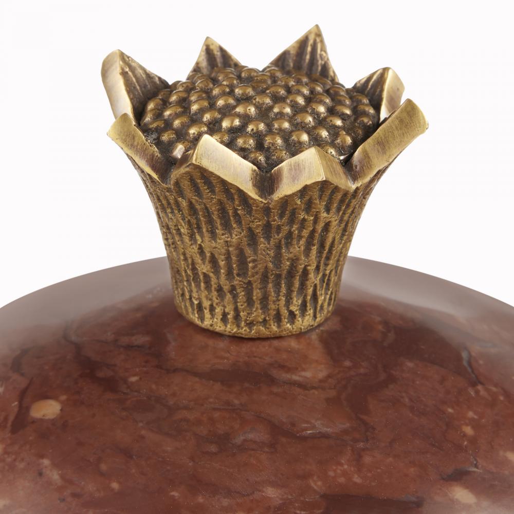 The crown jewel of the fruit world, a marble pomegranate of the deepest carmine is ripe for display on any surface. Inspired by the classical Greek fertility symbol and topped with a vintage brass stem, our unique sculpture can sit straight or be displayed at an angle. Finish will vary.