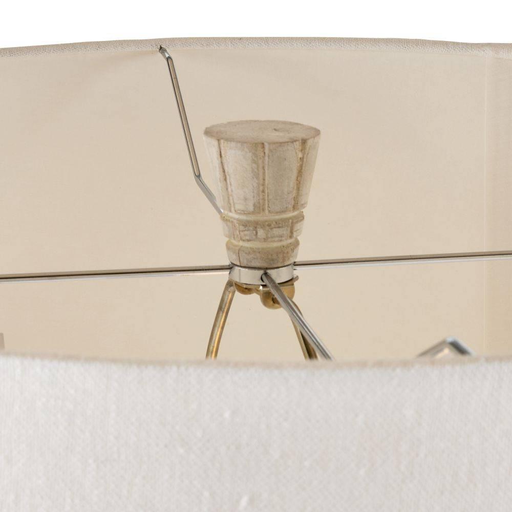 The etched paths of a busy cityscape inform our conical floor lamp. Crafted of mango wood whitewashed to bring out the intersection of lines in the tapered base, it is punctuated with an oversized linen drum shade in off-white and a matching mango wood finial. Clear plastic cord. Finish will vary.