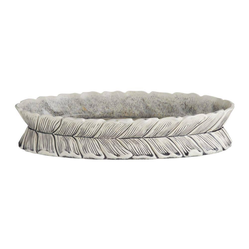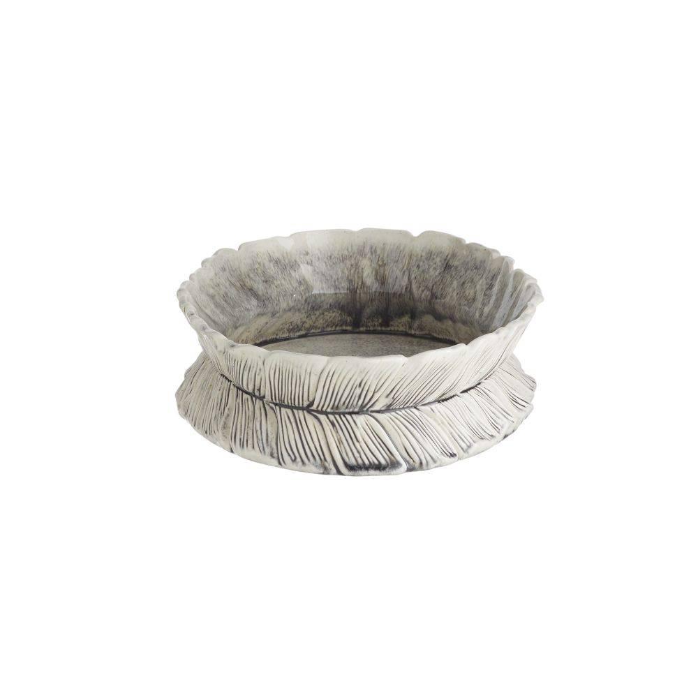 Resembling gathered leaves or feathers; the layered shapes of this porcelain centerpiece draw the eye with the illusion of subtle movement. An ice-reactive glaze highlights every detail with textural definition. Finish will vary.