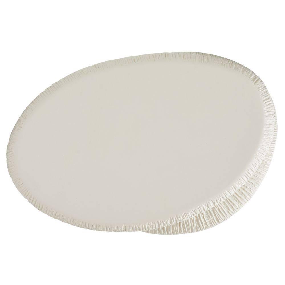 Our table's gravity-defying form, inspired by stacking stones is reminiscent of the sculptures of Andy Goldsworthy. The heavily veined texture highlights an evocative form cast from ivory concrete composite.