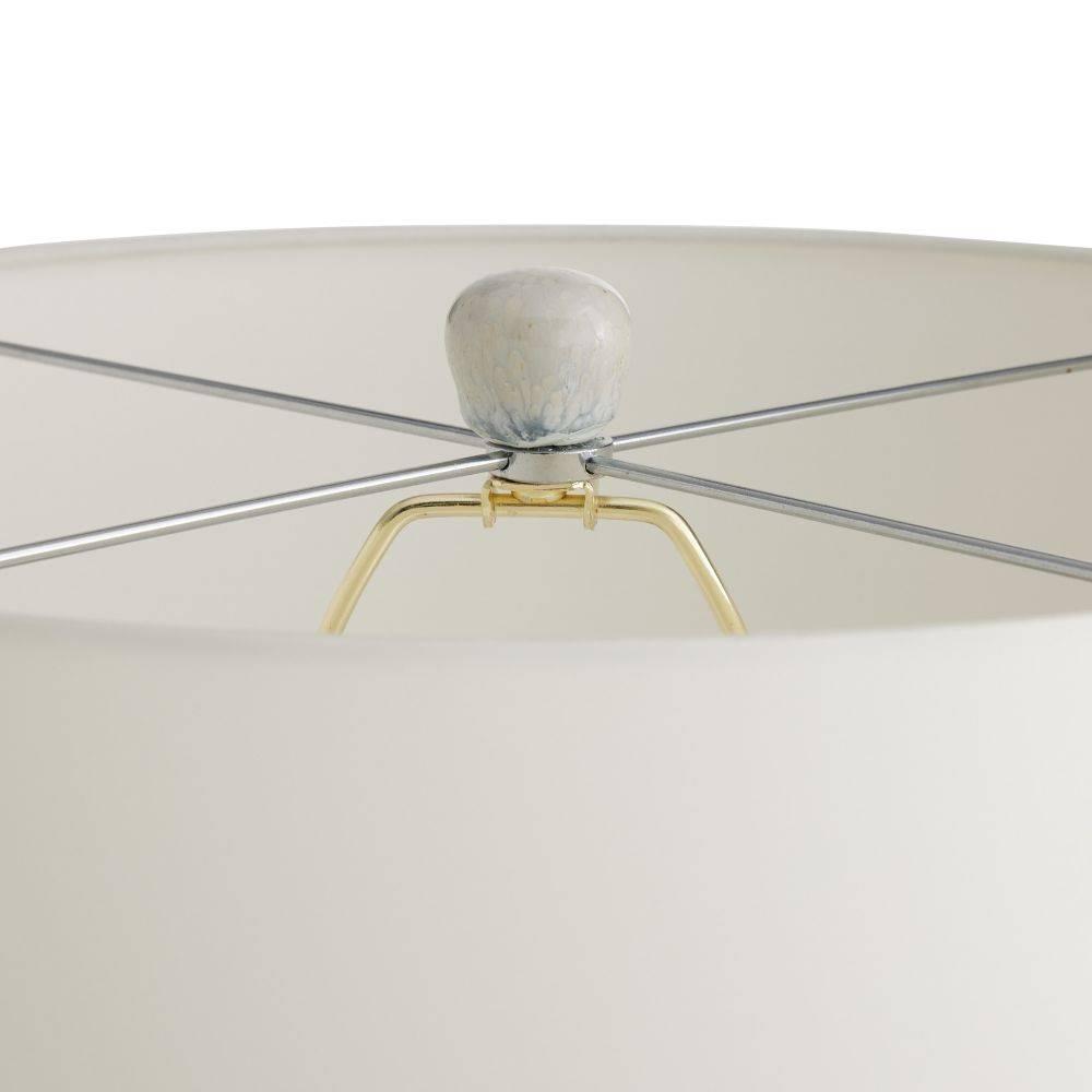 Like a ripe piece of fruit, the grooved silhouette of this ceramic table lamp brings a feeling of growth and abundance to any corner. Finished in an icy morn glaze with antique brass-plated steel hardware, it is topped with an ivory microfiber drum shade lined in off-white cotton secured with a matching finial. Finish will vary.
