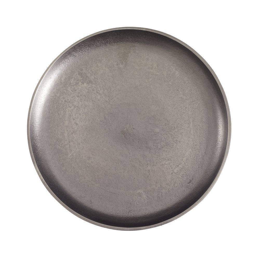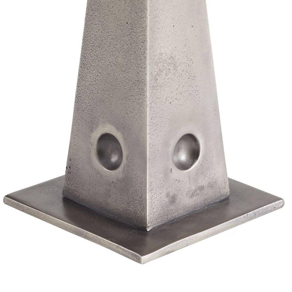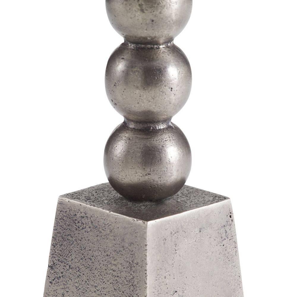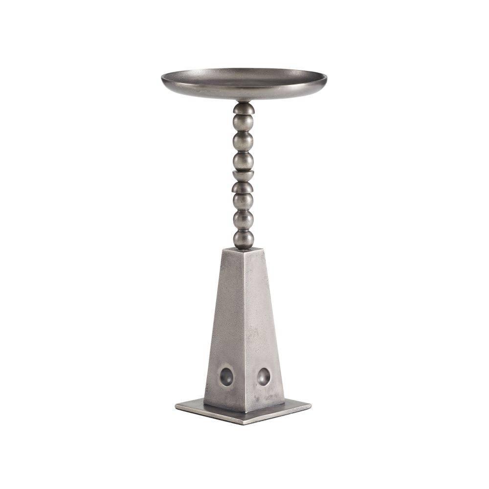 The playful form and totemic base of the Grady are influenced by the postmodern Italian design movement known as Memphis. Cast in the unexpected material of vintage nickel aluminum, the style's small scale and curved lip make it ideally suited for a drinks table. Finish will vary.