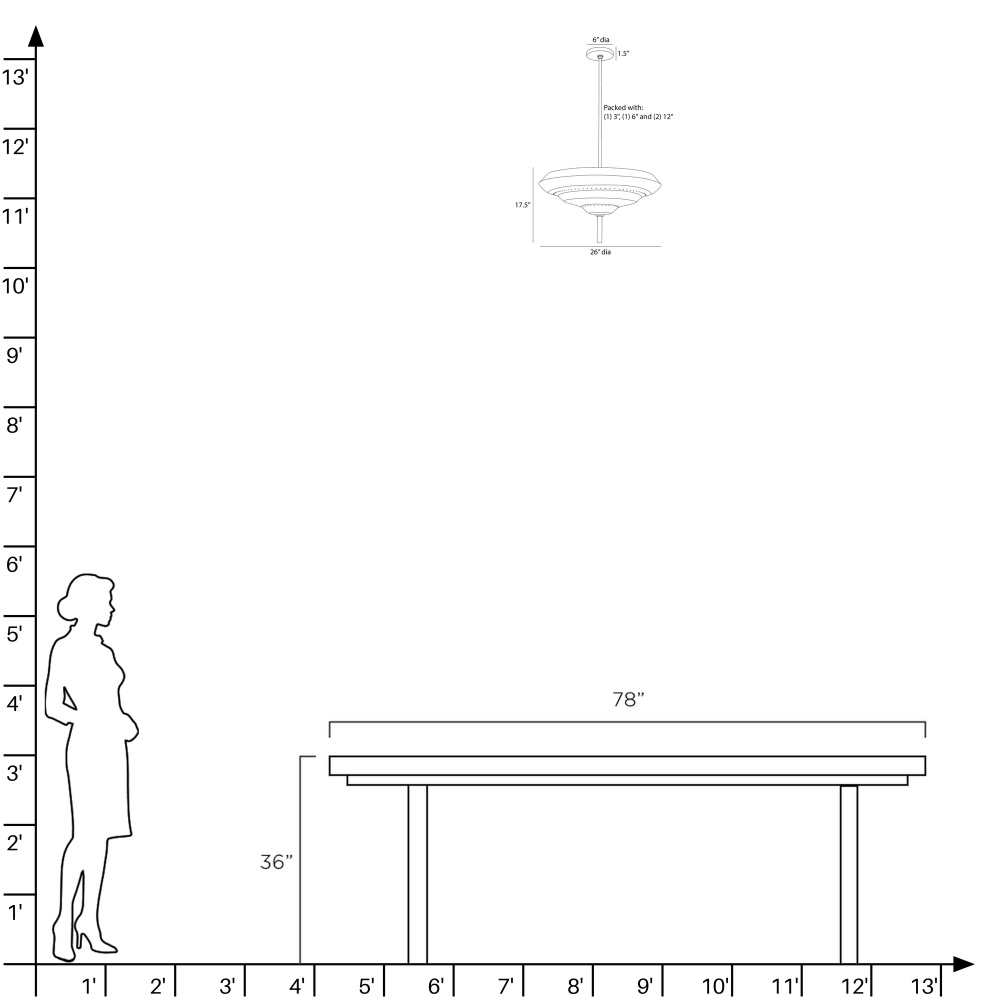 (1) 3", (1) 6", (2) 12"
