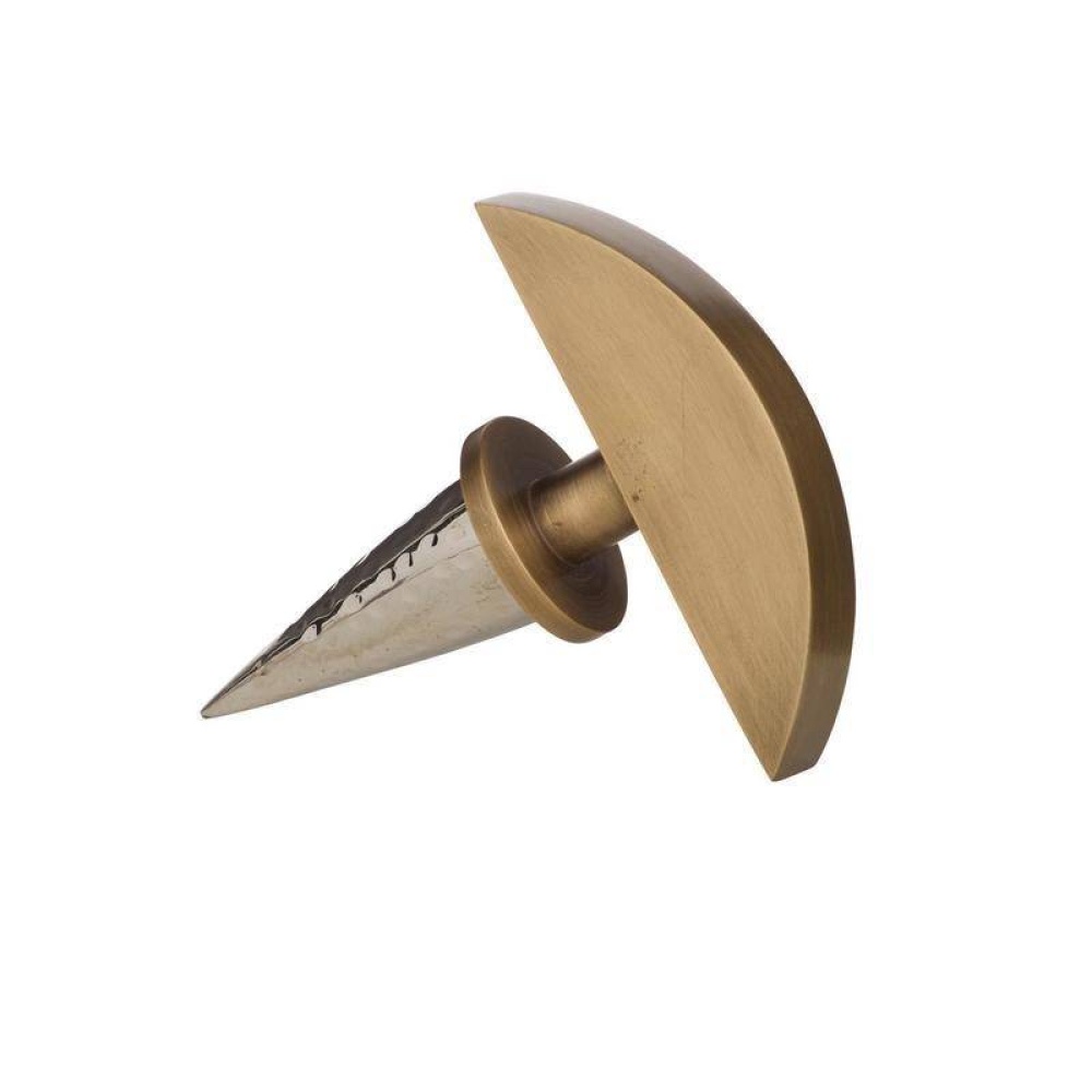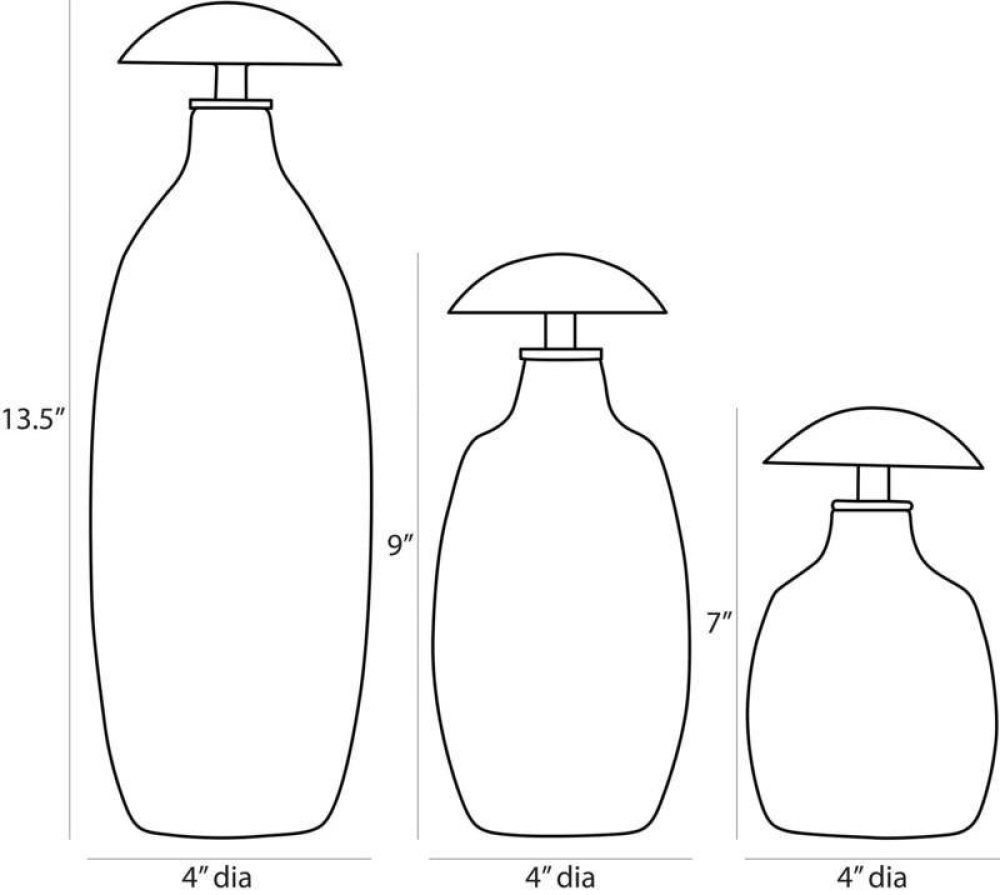 Made to elevate any bar cart, our trio of bottles are even more eye-catching when displayed together. The blue smoke luster hue of the optic glass is accented with crescent-shaped stoppers of antique brass. Each ends in a polished nickel stopper for secure closure. Finish will vary.