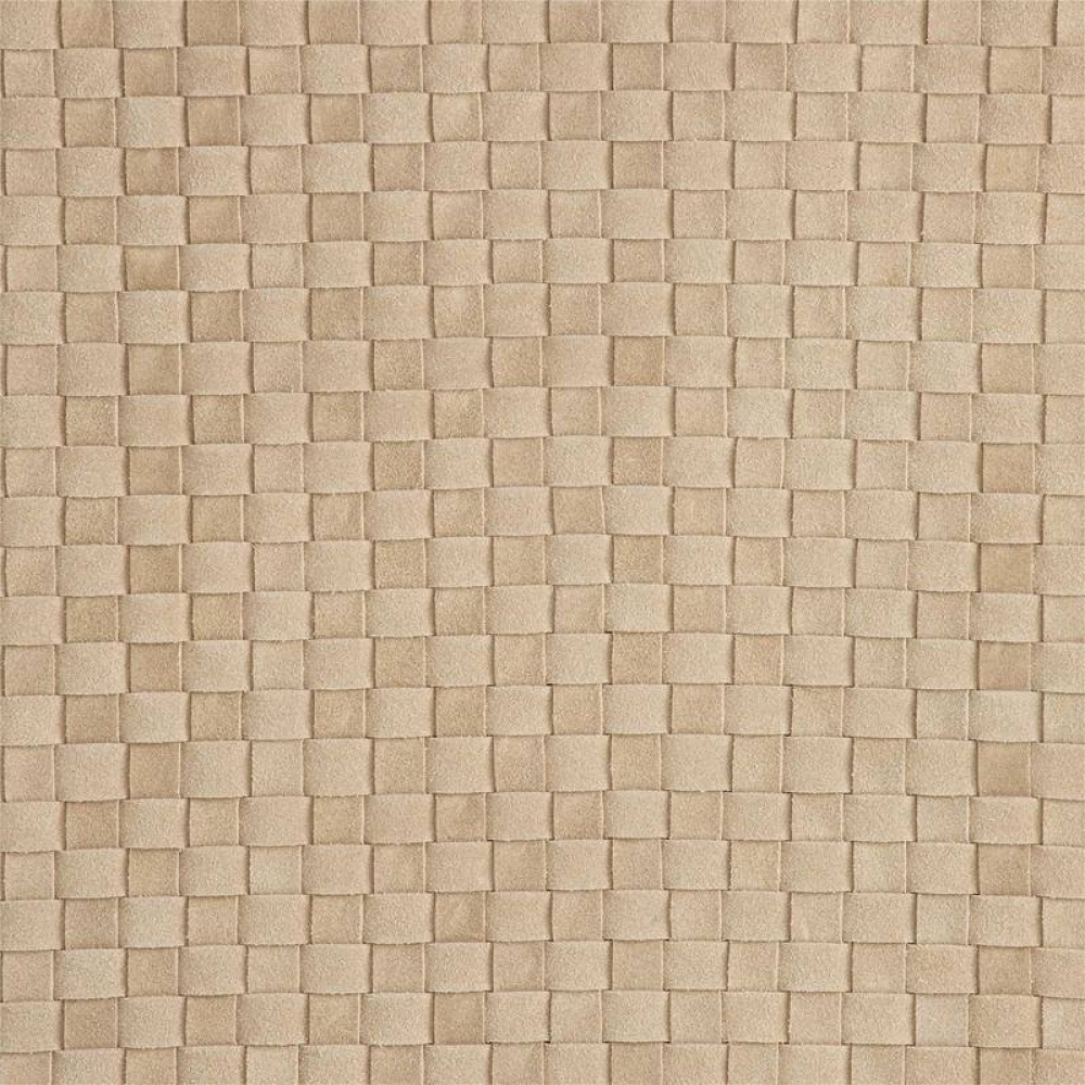 Strips of buttery yet sturdy taupe suede are woven in a checkerboard pattern to form our sophisticated tray. It is anchored by double handles of antique brass iron for easy movement. Designed to display books or accessories. Not suitable for holding drinks. Finish will vary.