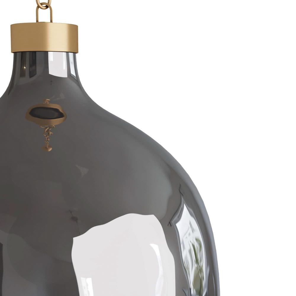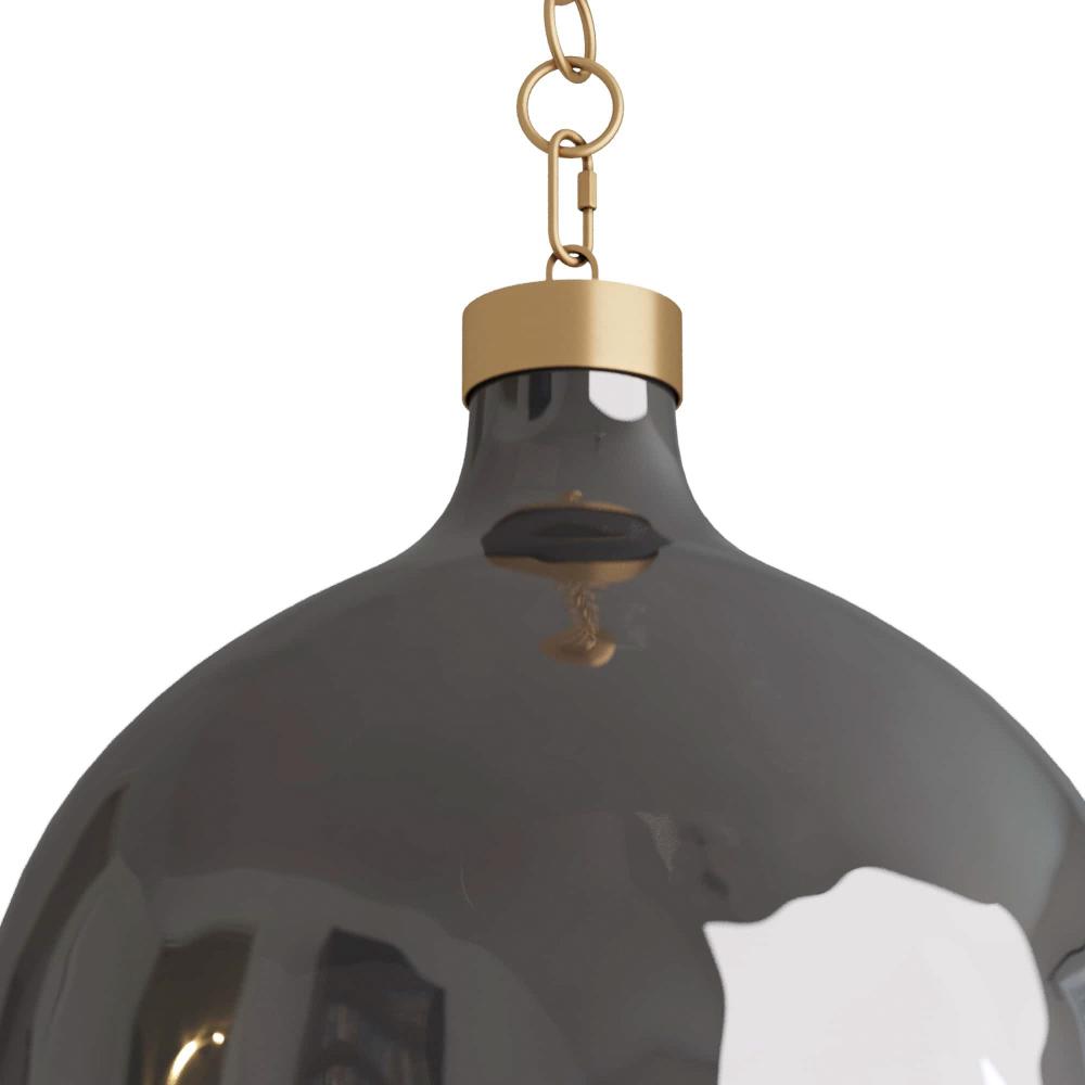 THE SLEEK, SOPHISTICATED TROST PENDANT TRANSFORMS AN INTERIOR LIKE MAGIC. THE OVERSIZED, OVAL LIGHT IS CREATED IN FLINT LUSTER GLASS. TURN IT ON, AND THE COLOR CHANGES TO A LIGHTER SHADE, AND THE REFLECTIVE FINISH BECOMES MUTED. THE PIECE IS FINISHED WITH AN ADJUSTABLE, JEWELRY-STYLE ANTIQUE BRASS CHAIN LINK. FINISH WILL VARY. DAMP-RATED, ALTHOUGH LIMITED COVERED OUTDOOR CONDITIONS MAY AFFECT FINISH.