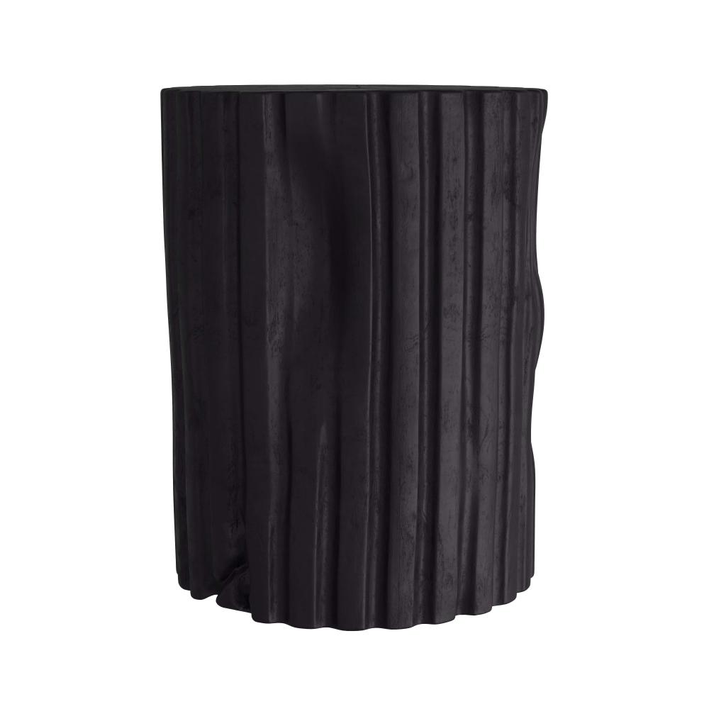 EARTHY AND ELEGANT, THE WILBUR SIDE TABLE IS DESIGNED WITH FLUTING REMINISCENT OF COLUMNS. HAND-CARVED IN SOLID, EBONY TEAK ROOT, THE ORGANIC ACCENT DISPLAYS GAUGED FEATURES—INDICATIVE OF THE NATURAL BEAUTY OF THE MATERIAL—LENDING A STUMP-LIKE, FOUND-OBJECT SENSIBILITY. FINISH WILL VARY.