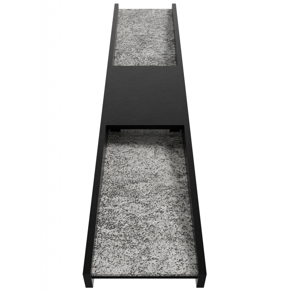 The natural slate stone adds rich texture and depth, creating a striking contrast against the smooth aluminum. Each piece feels grounded and organic, with subtle variations in the slate that catch the light and add visual warmth. The effect is timeless and refined — like nature sculpted into modern form.