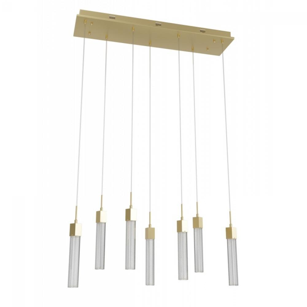 Boa 7 Light Multi Pendant in Brushed Brass with Studded Glass