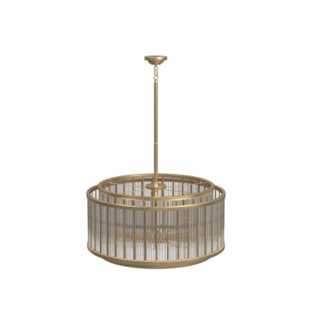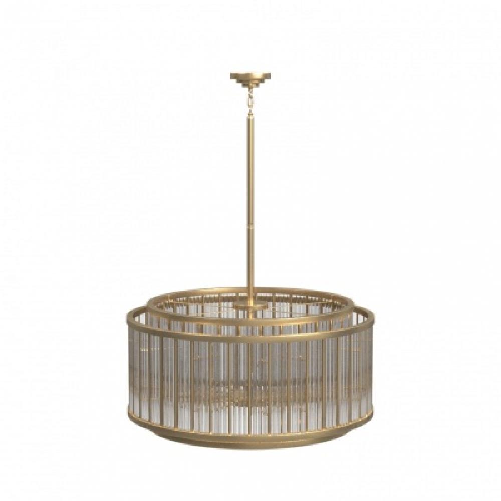 A lavish nod to the glitz and glamour of the roaring '20s: the art-deco-inspired frame of the Waldorf Collection is ringed with stunning crystal cylinders interspersed with modern metal columns.