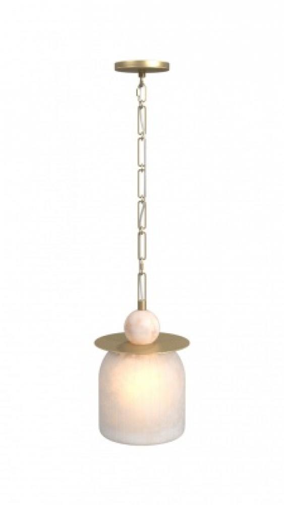 Westwood 11" LED Pendant in Alabaster with Brushed Brass Accents