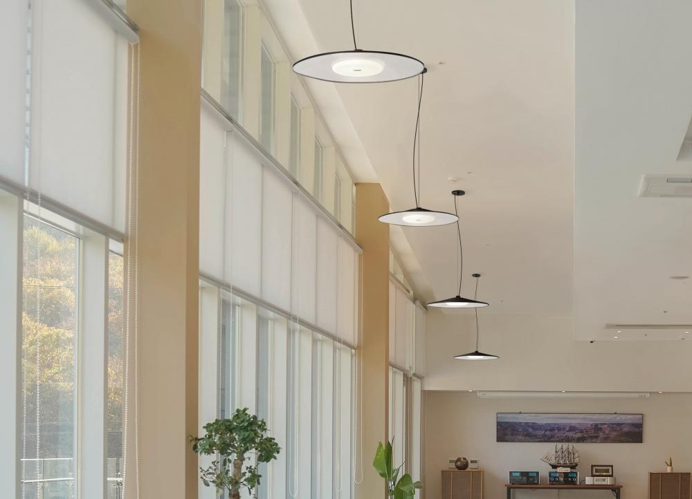 Our Swan employs a contemporary large-scale spun aluminum shade along with a blown glass toroidal diffuser, for a seductive inner glow combined with effective downlighting. The upper portion of the shade is painted in various color options, resulting in a design ideal for a diverse group of architectural spaces. The stem pendant fixture is equipped with an adjustable telescoping section, 4 connectable stem sections (3", 6", 12", and 18") and low Profile flat monopoint canopy. These stylish and functional luminaries are offered in a beautiful Black finish.