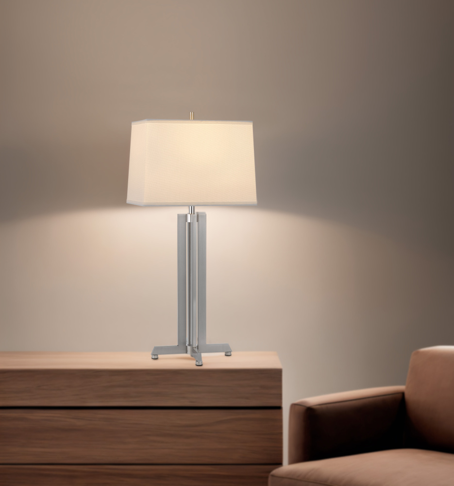 100W Lakewood metal table lamp with rectangular hardback fabric shade