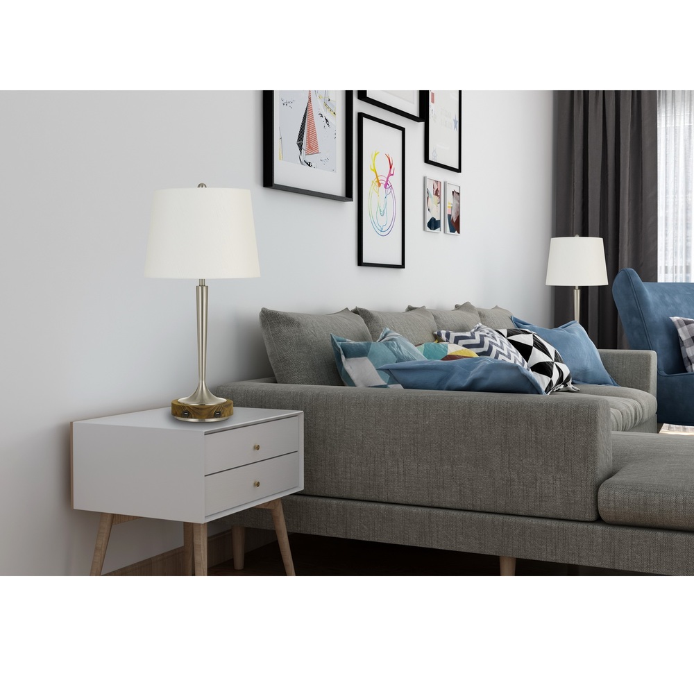 150W 3 Way Chester Metal Table Lamp With Wood Accent Base And 2 USB Charging Ports