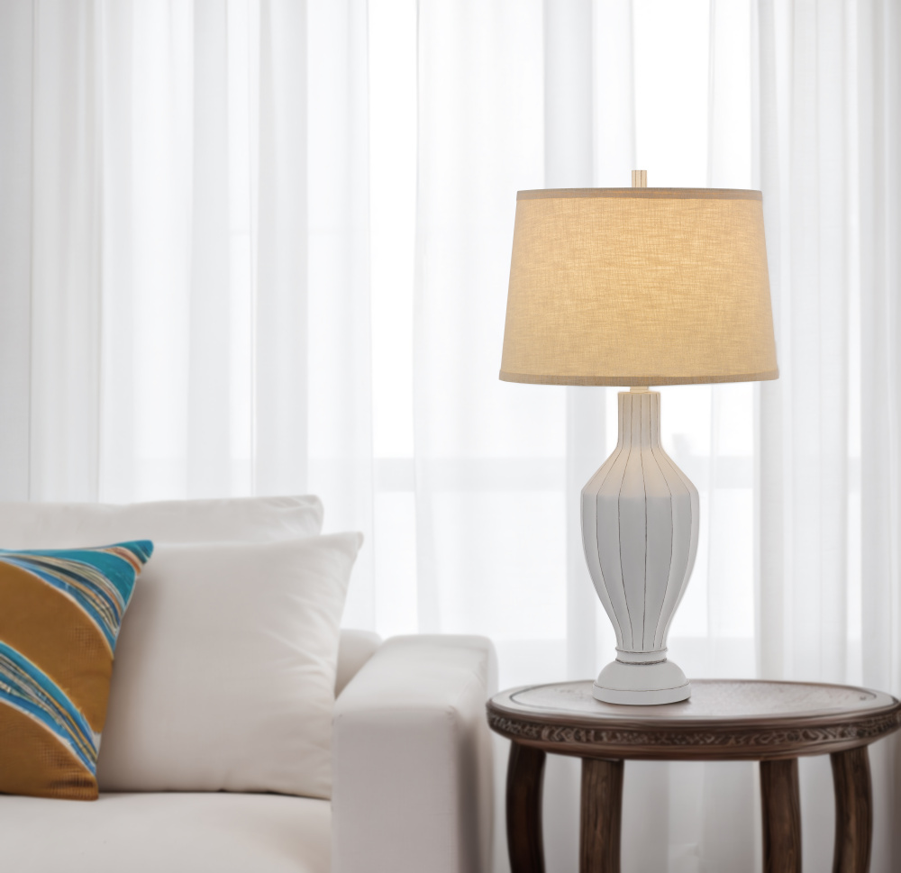 150W 3 way Hoover resin table lamp with hardback fabric shade