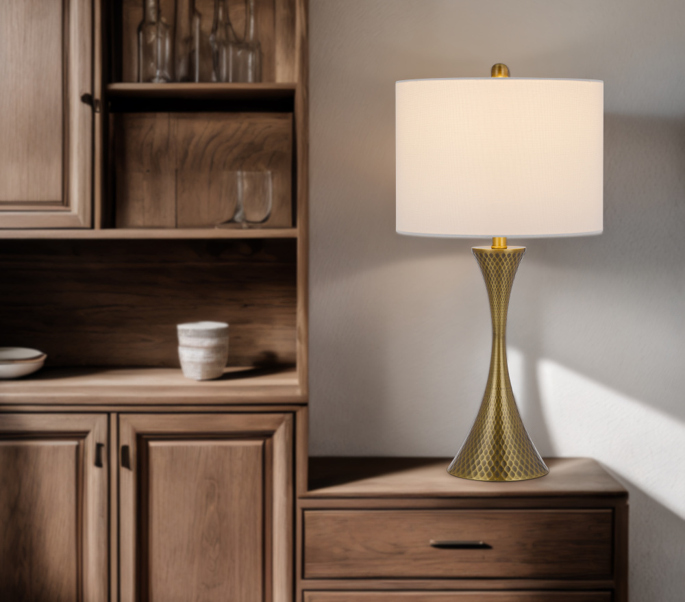 150W 3 way Imola metal table lamp with hardback fabric shade