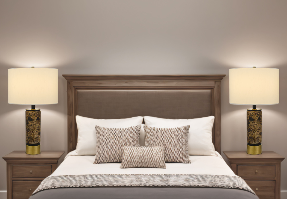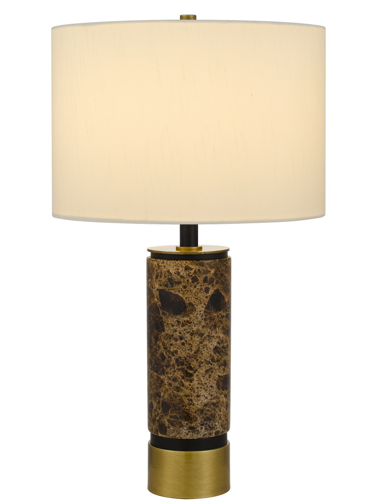 150W 3 way Salford Marble stone table lamp with metal base and hardback fabric shade