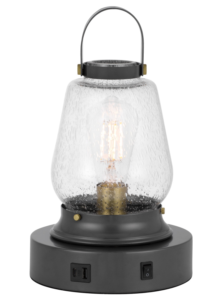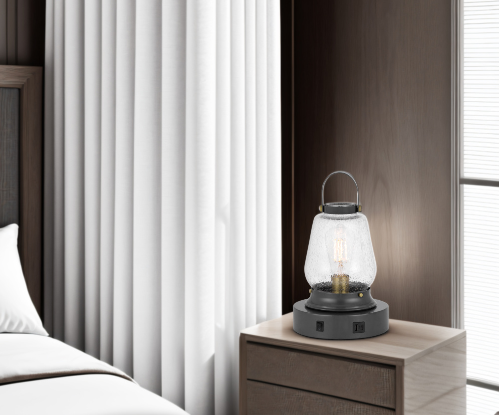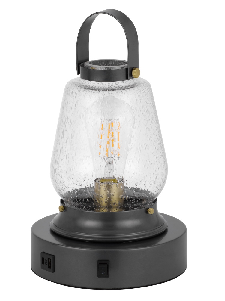 60W Terni accent lamp with bubbled glass & rocker switch. Equipped with 1 USB