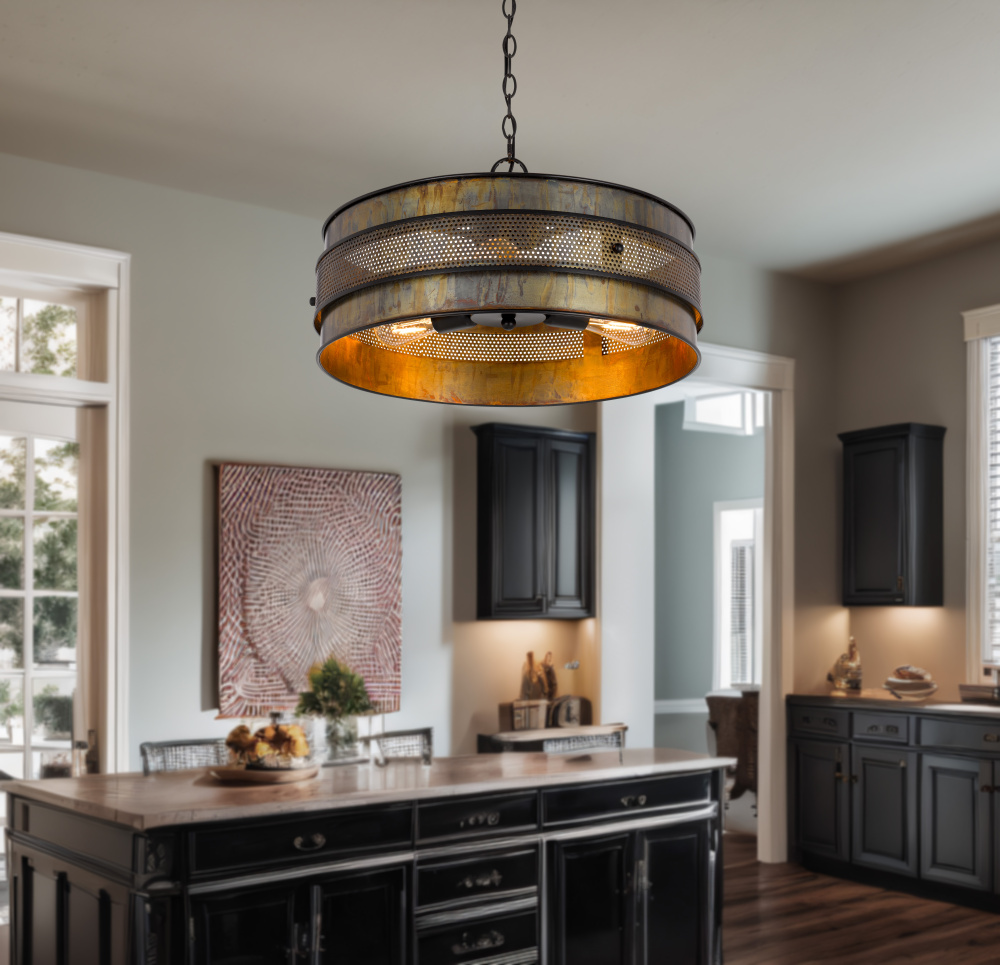 60W x 3 Heraklion metal drum chandelier