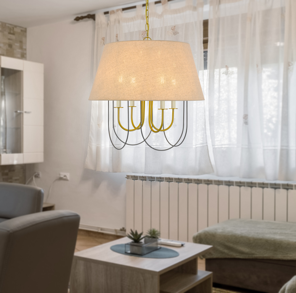 60W x 4 Eupora metal chandelier with burlap shade