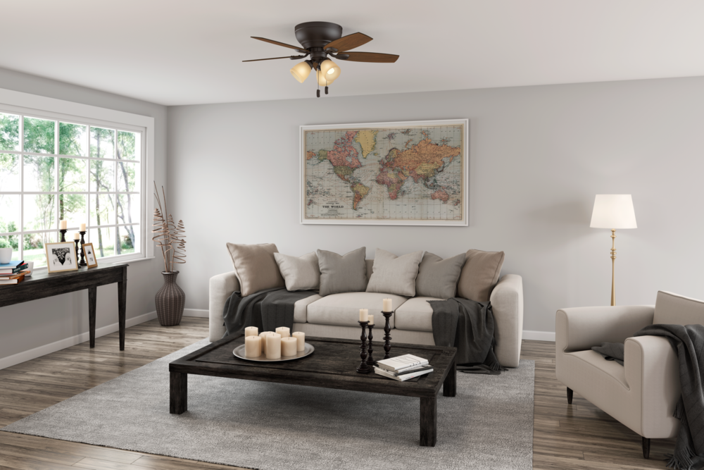 With simple styling that works almost anywhere, the Durant low-profile ceiling fan is a perfect fit for the rooms in your home with low ceilings. The traditional style is a bit reminiscent of the futuristic Bel Geddes automobile designs of the 1930s. The repetition of form in the clean curved lines interplays with the extravagantly rounded features to create the perfect archetype for traditional low-profile fans. This fan is powered by a reversible, four-speed Direct Drive™ motor providing unparalleled power, silent performance, and reliability over decades of daily use.