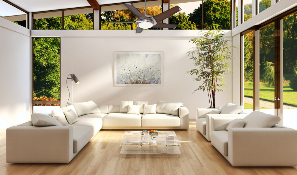 Form follows function in this impeccably finished Stealth fan's swept wing blades and fluid contours. Drawing inspiration from the Stealth Bomber aircraft, this magnificent fan's universal design makes it an ideal addition to your large living room with a modern interior design. This contemporary fan features an energy-efficient LED bulb and superior air circulation driven by an ultra-powerful six-speed DC motor for unparalleled power, silent performance, and reliability over decades of daily use.