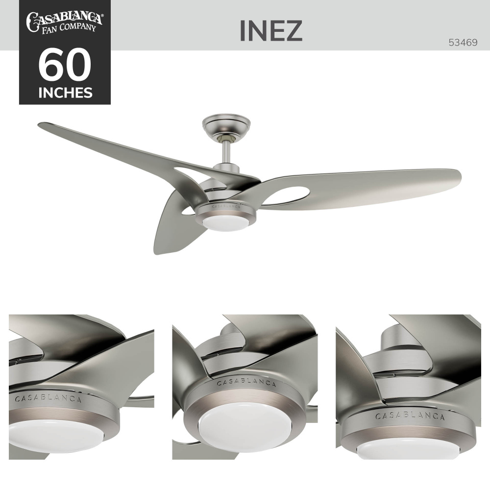Casablanca 60 inch Inez ENERGY STAR® Brushed Nickel Damp Rated Ceiling Fan with LED Light Kit