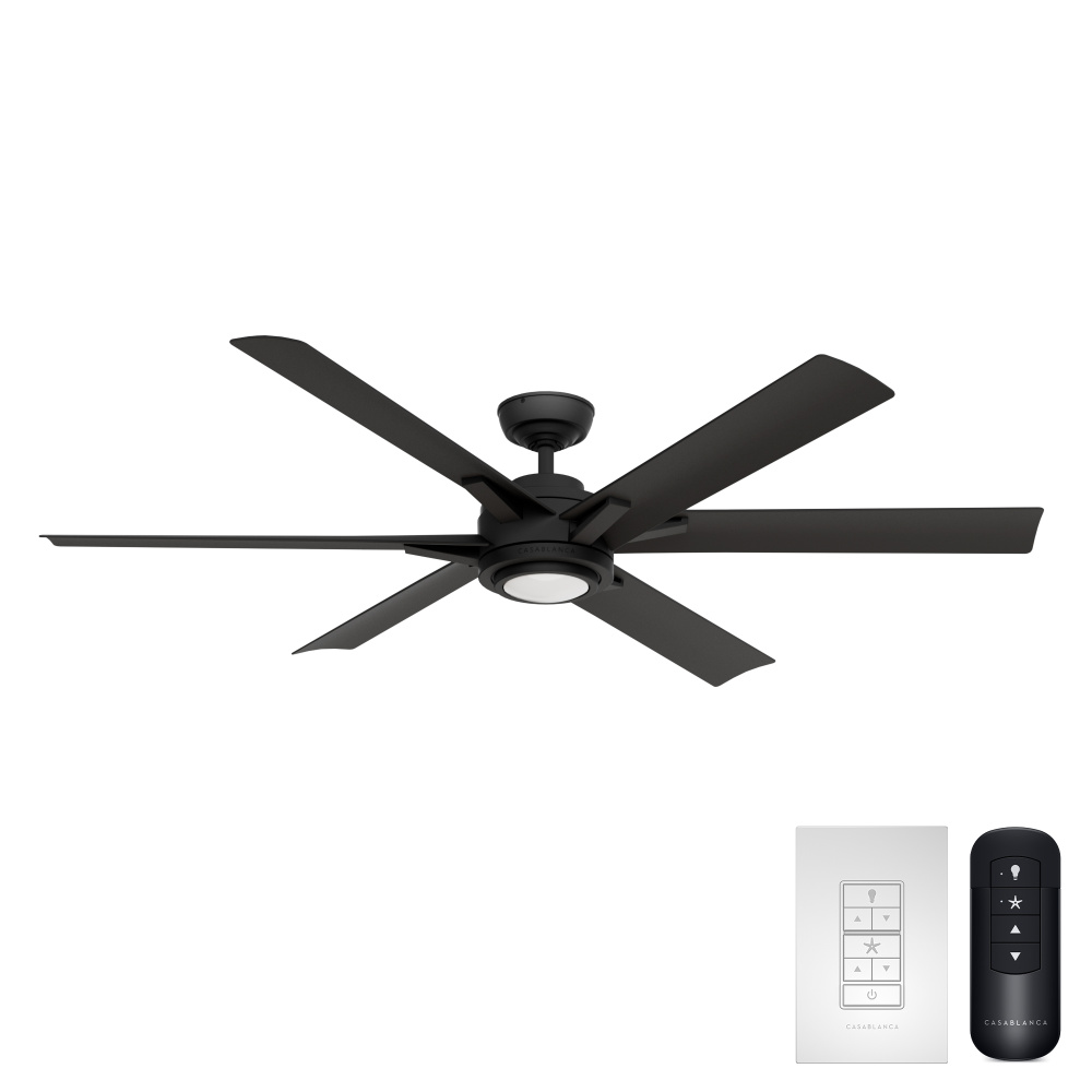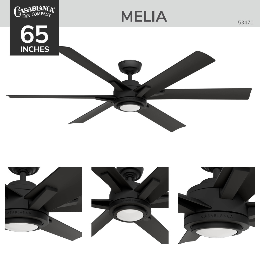 Casablanca 65 inch Melia ENERGY STAR® Matte Black Damp Rated Ceiling Fan with LED Light Kit
