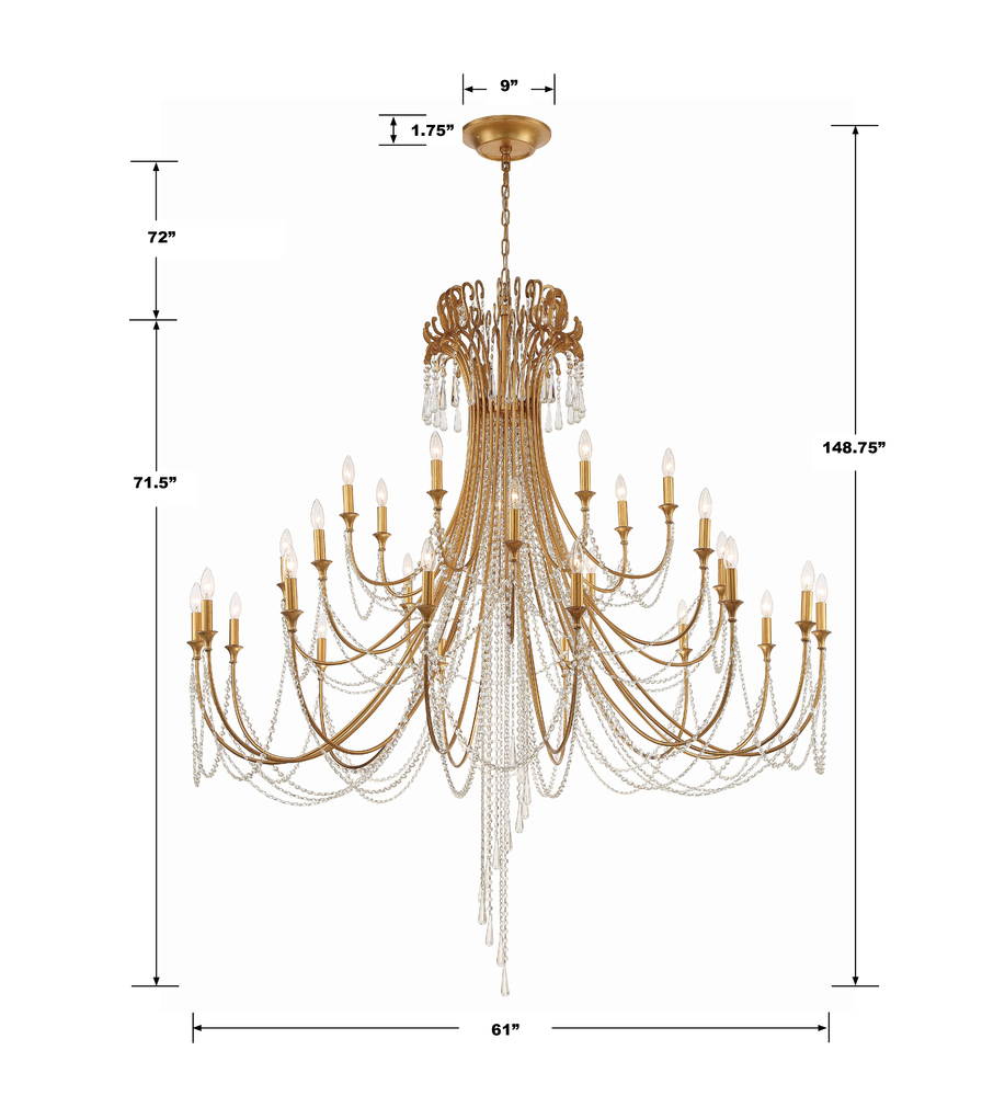 The glamorous Arcadia light features strands of faceted cut crystal jewels draped from a simple frame, creating a bowl-shaped silhouette. Designed to grace a bedroom, hallway, or entry this dazzling fixture will transform a room with its traditional elegance.