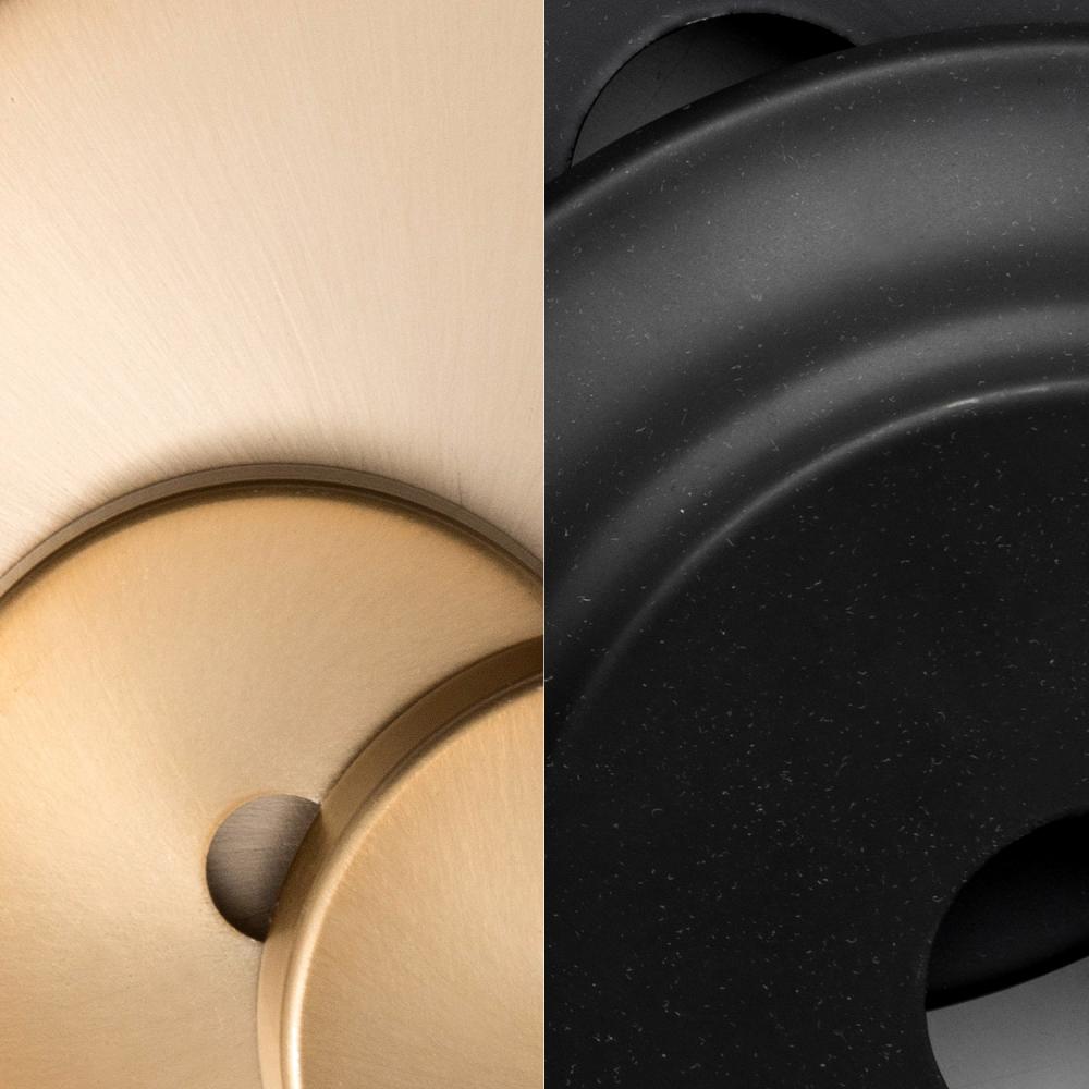The combo of Vibrant Gold and Matte Black creates a sleek and modern appearance with a rich depth to complement various styles and settings. The Vibrant Gold hue is a softer gold, while the Matte Black boasts a velvety muted finish that eliminates glare.