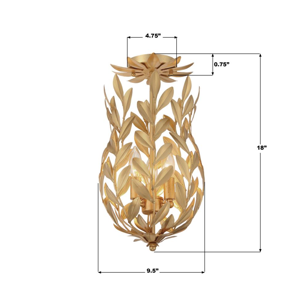 Broche 9.5'' Antique Gold Semi Flush Mount