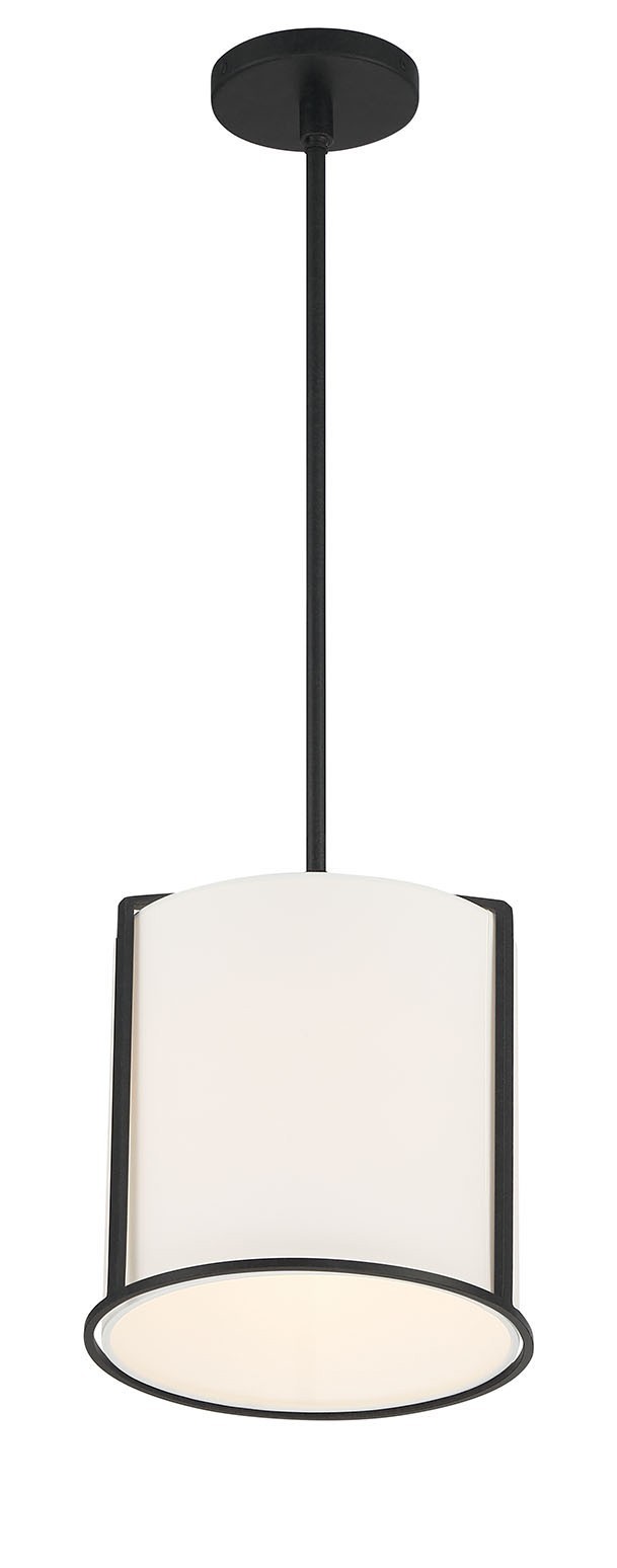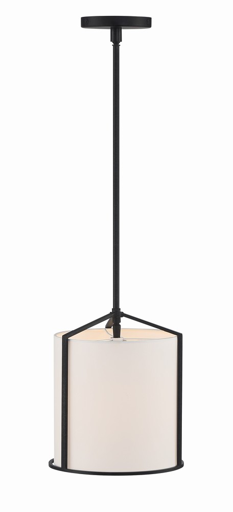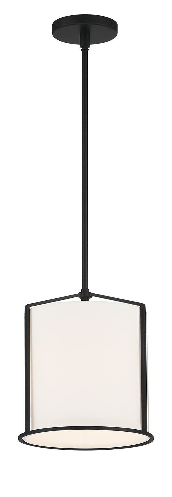 Fabric drum pendant. Convertible; can be installed as a Pendant or Ceiling Mount.