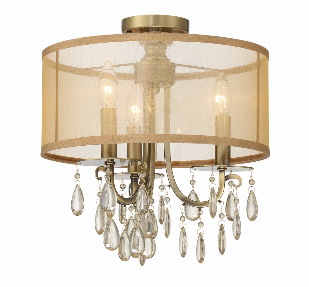 Hampton 14'' Drum Shade Antique Brass Semi Flush Mount