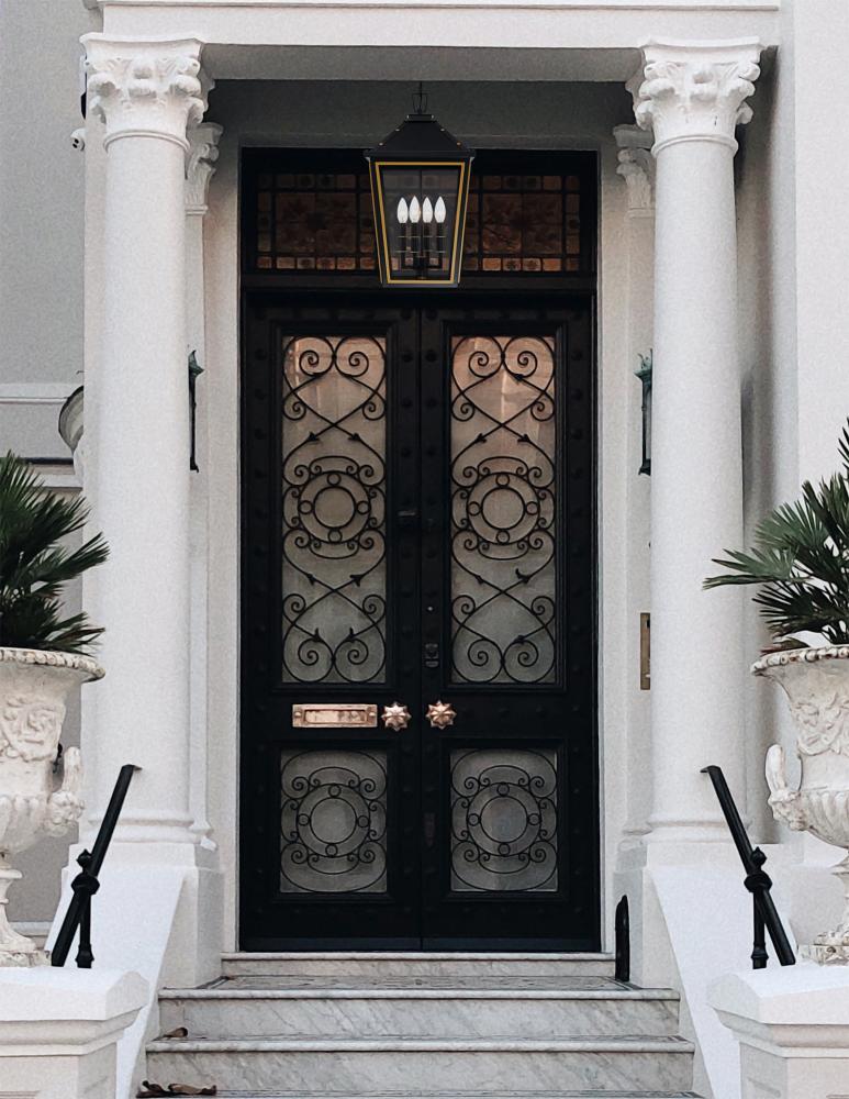 The Hawkins collection offers a modern take on traditional design. It showcases elegant, stately details that highlight a two-tone finish, clear glass panels, and gold rivet accents, seamlessly blending timeless charm with modern sophistication. The vintage charm makes it an ideal choice for creating an inviting and stylish outdoor space.