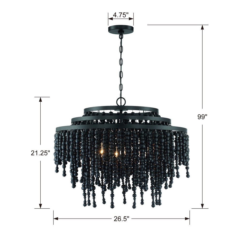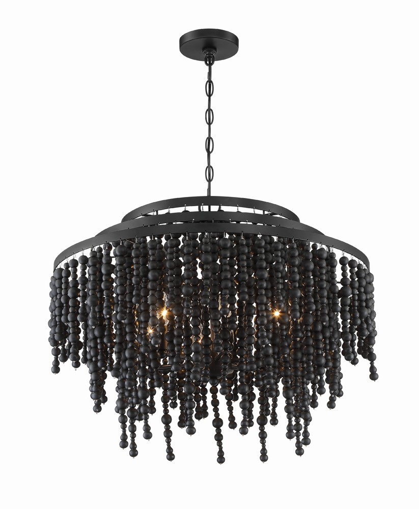 In a perfect combination of texture and materials, the Poppy chandelier's cascading in frosted glass or wooden beads create a rich visual impact on an interior. Whether the look is rustic, boho, or has a coastal vibe, this light is as versatile as stylish.