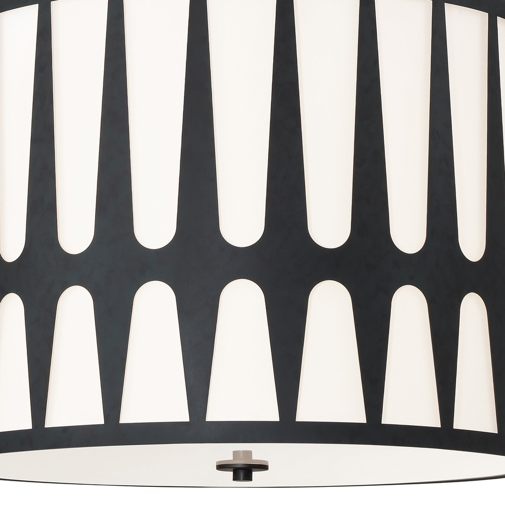 Makes a statement with its graphic metal frame surrounding a white fabric drum shape.