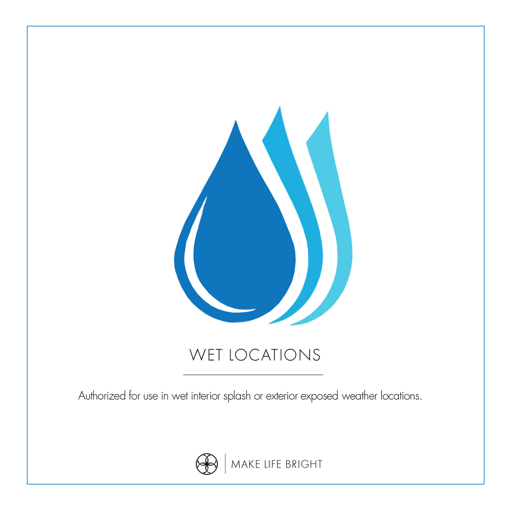 Authorized for use in wet interior splash or exterior exposed weather locations. Meets United States UL Underwriters Laboratories Product Safety Standards.