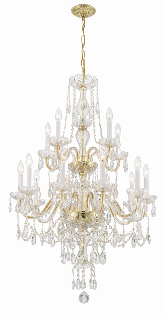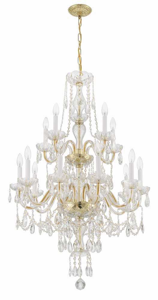 Traditional Crystal 32'' Hand Cut Crystal Polished Brass Chandelier