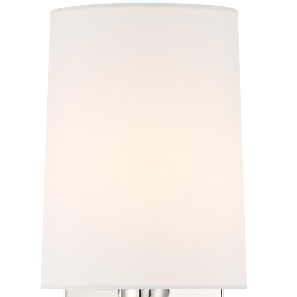 Both timeless and transitional, the minimalist design makes the Trenton ideal for any space in the home. Sleek white silk shade and slender hourglass metal tail makes an immediate impression in any room. Mounted on a rectangular back plate, this light from the Trenton Collection is a fresh twist on a classic silhouette.