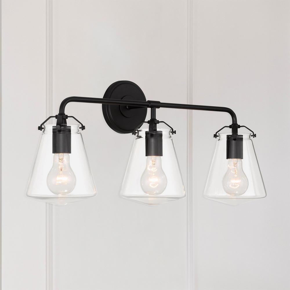 The Voss Collection is a sleek, enduring design with subtle angular details, offered in various finishes and sizes for your unique space. It’s clear glass cone-shaped pendant is closed on the bottom and fastened with metal on its open top. The patterned chain detail adds a touch of character to its streamlined design. The Voss Collection is not confined to a single style; it is a versatile design that suits a variety of spaces, from minimalist and modern to classic and eclectic.