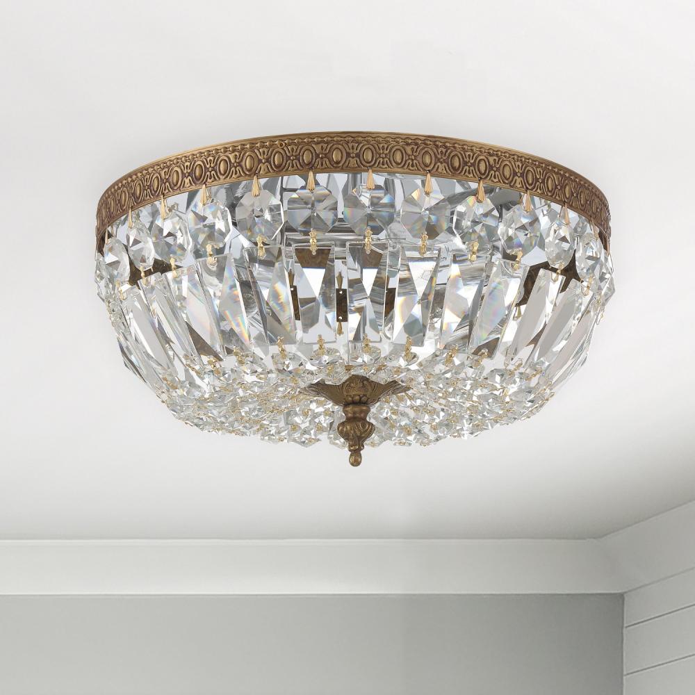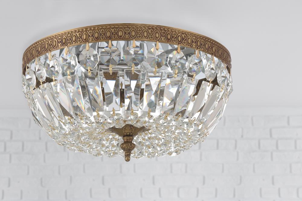 Waltham 12'' Italian Crystal Olde Brass Flush Mount