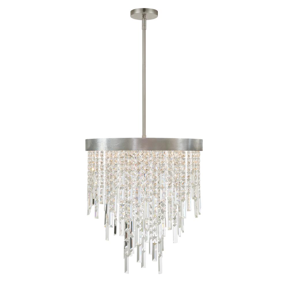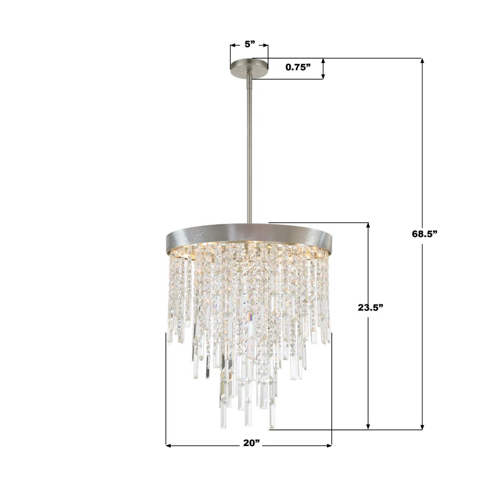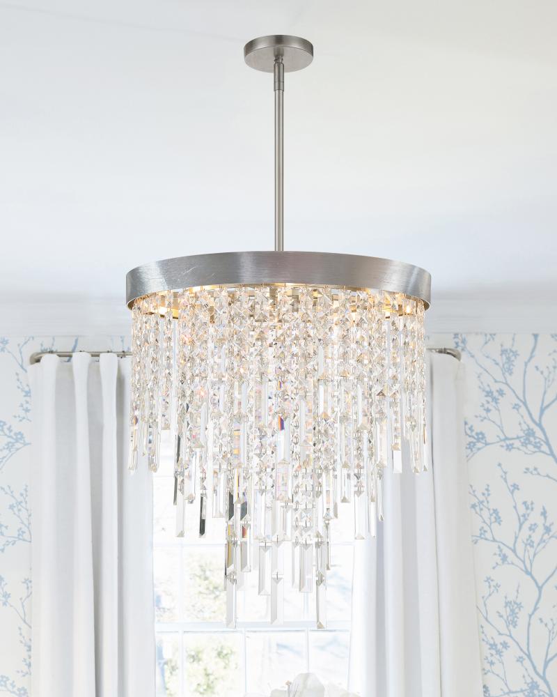 The Winfield collection's artful elegance and inspiring beauty make a sophisticated statement to an interior. This exquisite collection showcases square and rectangular multi-faceted cut crystal strands gracefully hanging from its metal frame. These mesmerizing crystals sparkle and reflect light, creating a dazzling display that captures attention and adds a touch of opulence to any space. Whether illuminated or not, its eye-catching presence becomes a focal point in any room.