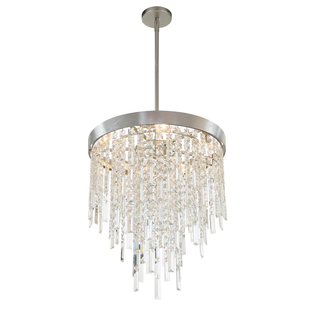 The thick simple metal frame of the Winfield is dramatically dressed with a cascade of crystals.