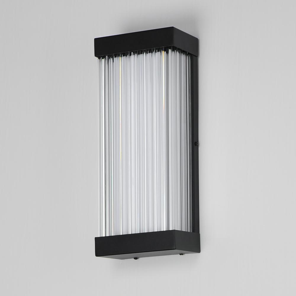 A colonnade of faceted crystal columns form these rectangular wall sconces suitable for wet locations. The crystals are backlit with an evenly distributed LED light source that is set within non-corrosive Aluminum and Stainless Steel frames. With an extens