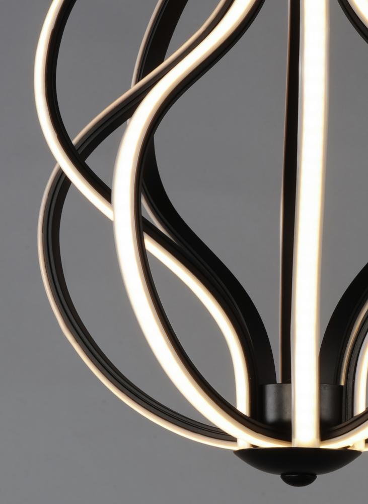 A sculpture of durable steel and aluminum channel is gracefully formed with offsetting waves of motion. This collection is fully dimmable for a great combination of form and function.